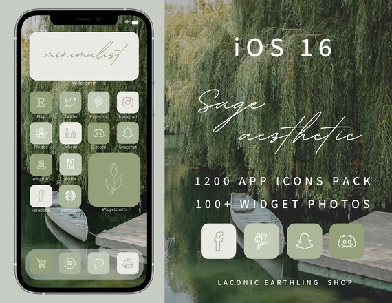 Ios 16 Sage Aesthetic 1200 App Icons Pack Etsy